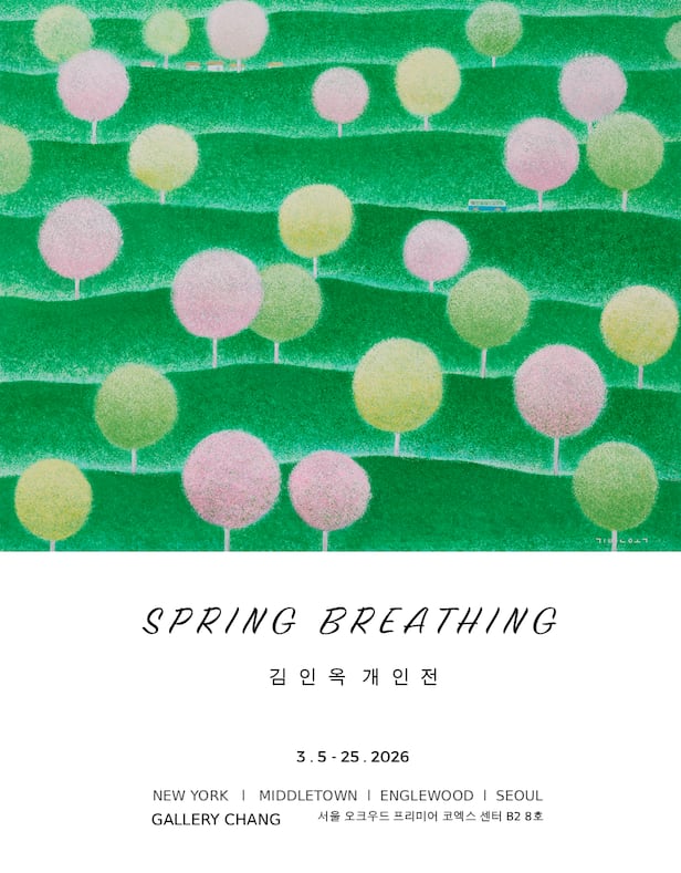 서울 강남구 삼성동 갤러리 장(Gallery Chang)은 2026년 3월 5일(목)부터 3월 25일(수)까지 김인옥(71) 작가 개인전 <봄이 들이마신 풍경(Spring Breathing)>을 개최한다. 작품들은 작가가 30여년 이상 살고 작업해온 경기도 양평군 강하면 항금리와 주변 자연에서 모티브를 가져왔다. 작업은 작가 특유의 비례 구도 안에 함축과 생략의 미학을 풀, 나무, 새 같은 생명의 존재와 일상의 사물로 대비시켰다.