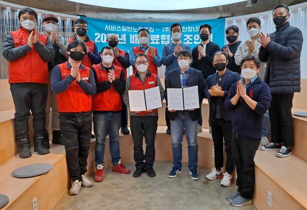 우아한형제들의 자회사 우아한청년들은 이날 민주노총 서비스연맹 서비스일반노동조합과 '2021년 배달료협상 조인식을 열고' 이 같은 내용을 골자로 한 배달료 단체협상 합의안에 최종 합의했다고 5일 밝혔다. 이번 합의안은 앞서 서비스일반노조가 진행한 찬반투표에서 79% 찬성으로 통과됐다.