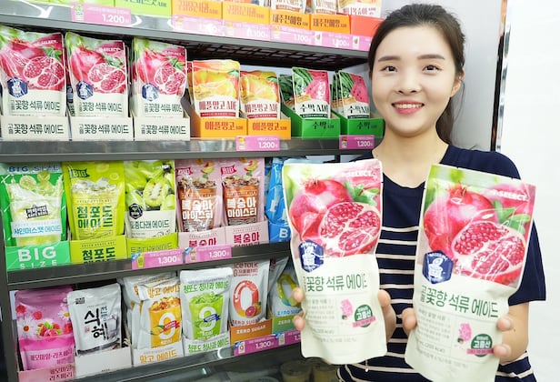 신상품은 전남 고흥에서 육성된 석류 품종인 '꽃향 1호'를 활용해 만들어졌다. 꽃향 1호는 일반 석류보다 당도가 높고 과육이 단단하며 신맛이 적은 것이 특징이다.