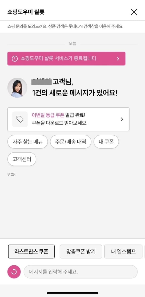 롯데쇼핑이 온라인에서 제공 중인 인공지능(AI) 기반 챗봇 '샬롯'이 다음달 중 서비스를 종료한다.