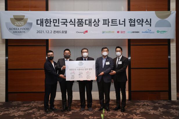 조선비즈는 이날 오전 시상식에 앞서 파트너 협약식을 열고 기획, 소비자 평가, 빅데이터 분석 등을 담당한 파트너사들과 협약식을 진행했다. 파트너 협약식에는 김영수 조선비즈 대표, 문정훈 서울대 푸드비즈니스랩 교수, 조기준 식품 커뮤니티 애플리케이션(앱) 엄선 대표, 권용규 우아한형제들 상무, 김인종 밀알복지재단 기빙플러스 본부장 등이 참석했다.