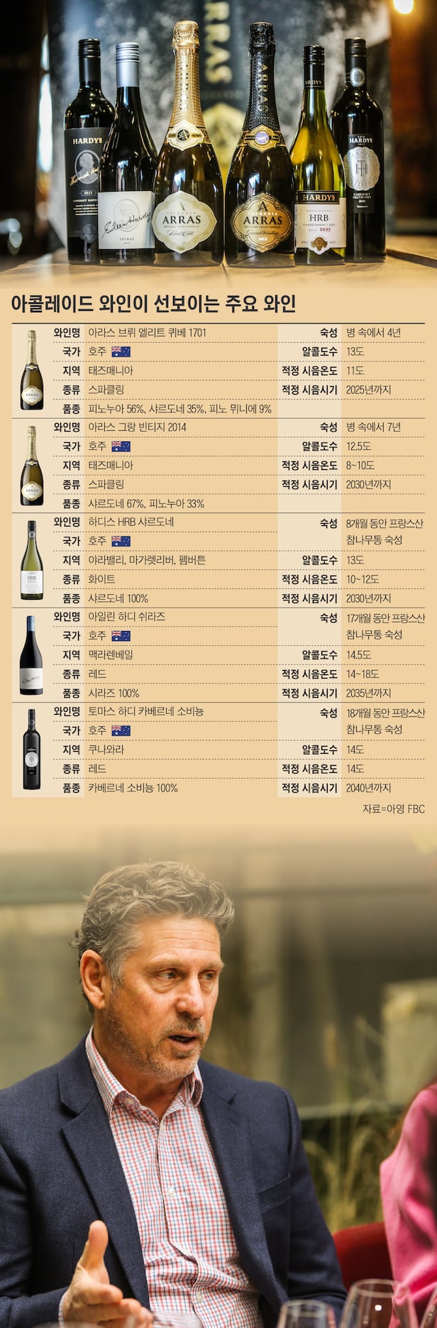 1836년 설립된 호주 최대 규모 와인 기업 아콜레이드(Accolade Wines)는 올해 우리나라에서 하디스(Hardys), 하우스 오브 아라스(House of Arras) 같은 호주산 프리미엄 와인을 선보이는 행사를 열었다.