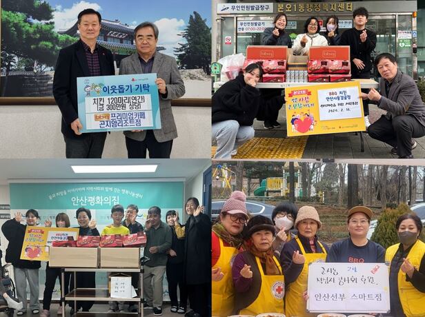 BBQ는 2월 한 달간 제주·대전·대구·광주·경기 등에서 매장을 운영하는 가맹점과 사회복지관·노인복지관·마을회관·아동복지센터 등에 치킨 1000여 마리를 전달했다.