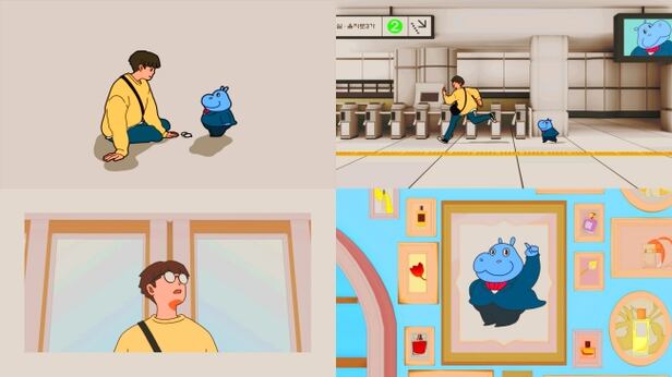 The released teaser was produced in an animated format, showcasing a man in love and a plump blue hippopotamus that is always in his view, conveying a delightful yet kitschy charm.