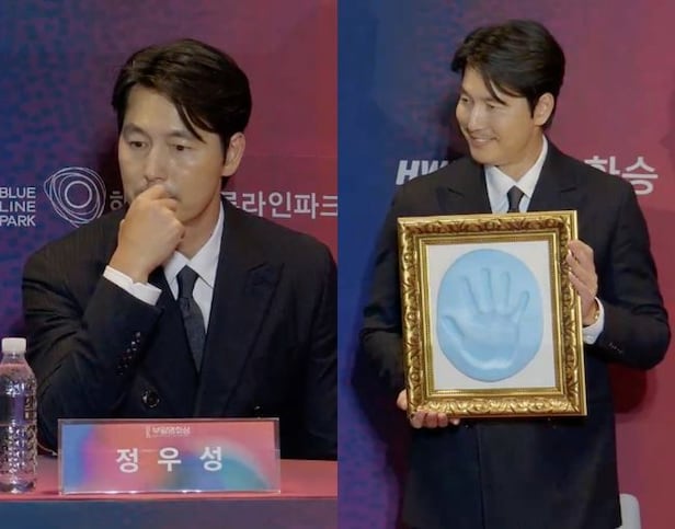 At the handprinting event of the 34th Buil Film Awards held at Signiel Busan in Haeundae District, Busan, on the afternoon of the 18th, Jung Woo-sung attended in his capacity as last year's Buil Film Awards best actor winner. Jung Woo-sung, Kim Young-seong, Lim Ji-yeon, Kim Geum-soon, Shin Hye-sun, and Lee Joon-hyuk appeared.