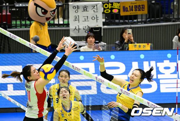 In the second set, Yang Hyo-jin of Hyundai Engineering & Construction is scoring on an attack. Mar. 8, 2026