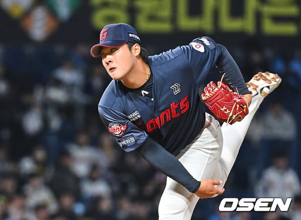 Lotte Giants' Lee Min-seok is pitching all-out. Mar. 31, 2026
