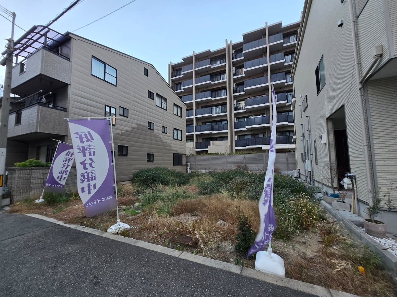 Even after visiting several empty houses in this neighborhood, most did not appear to be uninhabited from an outward perspective. A large sign saying "For sale" was the only indication that the tidy two-story house was currently empty. In some cases, poorly maintained empty houses had already been demolished. In place of demolished empty houses, real estate companies had placed promotional flags for new developments. A resident in their 70s from Hirano Ward said, "The houses that used to be inhabited have been demolished and turned into vacant lots."