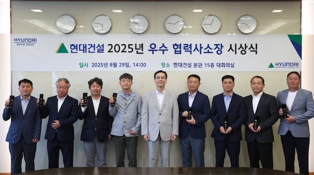 Hyundai E&C announced on the 31st that it has awarded a total of 140 million won in bonuses to 27 outstanding site managers selected under its newly introduced 'Excellent Partner Site Manager Award System.'