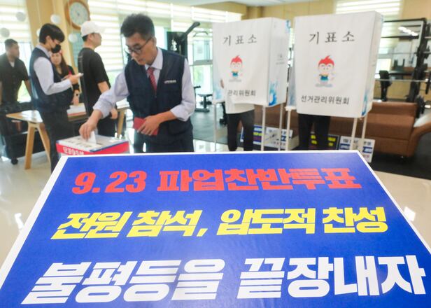 The Gyeonggi Bus Union Council said it approved a strike with a 97.9% approval rate among voting members, based on ballots held by each affiliated bus company from 9 a.m. to 3 p.m. that day. Of 19,384 members, 90.6% (17,576) took part in the vote.