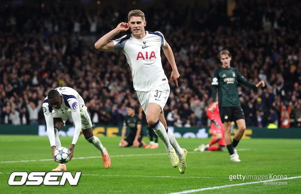 Tottenham Hotspur said on the club's official website on the 6th (KST), "Micky van de Ven completed an unbelievable long-distance dribble goal against Copenhagen," adding, "his run is the longest dribble in UEFA Champions League history to result in a goal." A Tottenham defender had set a new competition record with a solo breakaway.