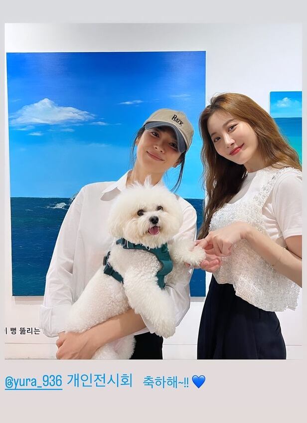 21일 송혜교는 자신의 인스타그램 스토리에 "개인전시회 축하해"라는 글과 함께 한 장의 사진을 게재했다. 사진 속에는 송혜교가 반려견과 함께 바다 배경의 그림 앞에서 작가 유라와 환한 미소를 짓고 있다.