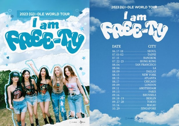 큐브 엔터테인먼트는 지난 18일 (여자)아이들은 월드 투어 '2023 (G)I-DLE WORLD TOUR [I am FREE-TY]'의 추가 공연 일정이 담긴 포스터를 공개했다.
