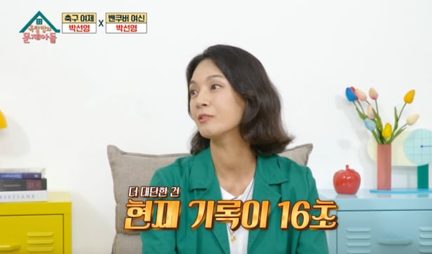이어 박선영은 "저는 100m 달리기에서 13초가 나왔었다. 최근에 쟀을 때는 16초에 뛰었다"고 말해 모두를 놀라게 만들었다.