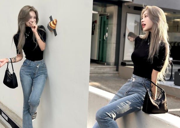 최준희는 블랙 상의에 청바지를 매칭하고 있다. 몸매를 드러낸 상의에 그의 가녀린 허리라인이 드러나며 감탄을 더한다.