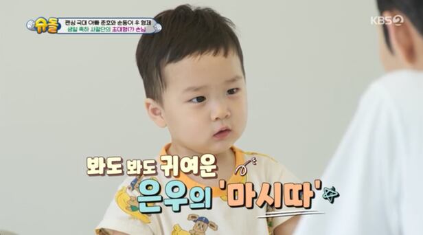 이어 은우 최애 간식인 딸기 과자를 가져온 오상욱은 은우에게 간식을 건넸다. 은우에게 꼭 듣고싶었다는 "마시따"를 들은 오상욱은 웃음을 참지 못했다.