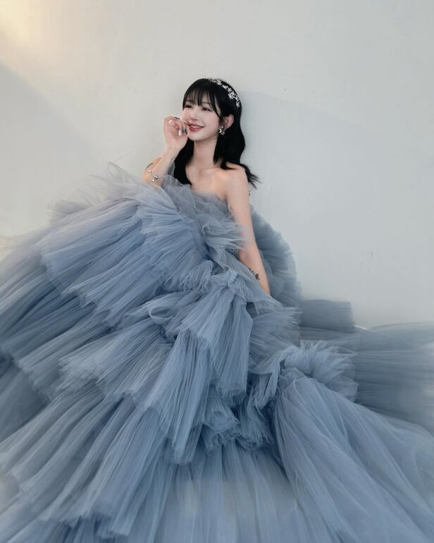 사진 속 최준희는 블루톤의 화려한 튜브탑 드레스를 입고 포즈를 취하고 있다. 최준희는 가녀린 어깨라인을 드러내며 공주님 같은 자태로 시선을 사로잡는다.