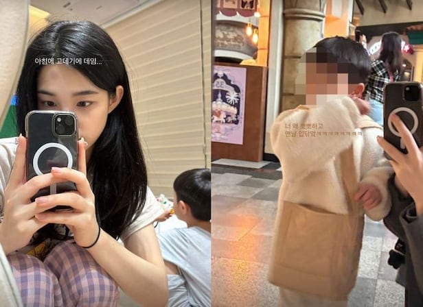 공개된 사진 속에는 놀이공원에 방문해 즐거운 한 때를 보내고 있는 두 모자의 모습이 담겼다. 또한 율희는 자신의 뽀뽀에 옷소매로 입을 닦는 아들을 포착, 이를 사진에 담으며 "너 왜 뽀뽀하고 맨날 입닦아"라며 서운함을 토로해 웃음을 안겼다.