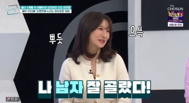 이성미는 "평소 남편이 육아 도와주냐"고 궁금해 했고, 이인혜는 "새벽에 피곤할까봐 신랑이 모유 유축해서 먹이고 트름시켜준다. 혹여 제가 모유수유 하면 편하게 해주려고 등에 받쳐주고 센스있게 해주고 애기랑도 잘놀아준다"고 자랑했다.