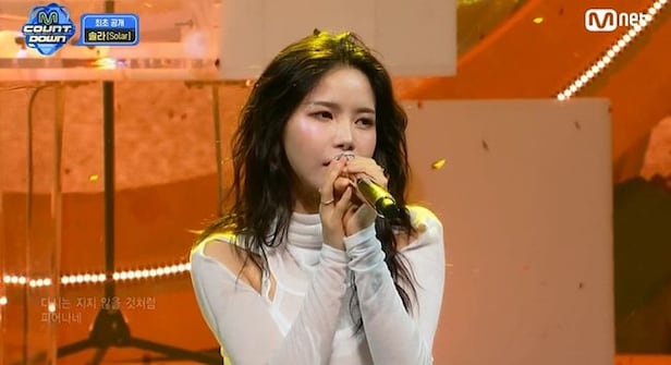 지난달 30일 미니 2집 'COLOURS(컬러스)'를 발매한 솔라는 지난 2일 Mnet '엠카운트다운'을 시작으로 KBS2 '뮤직뱅크', MBC '쇼! 음악중심', SBS '인기가요'에 잇달아 출연해 타이틀곡 'But I(벗 아이)' 컴백 무대를 펼쳤다.