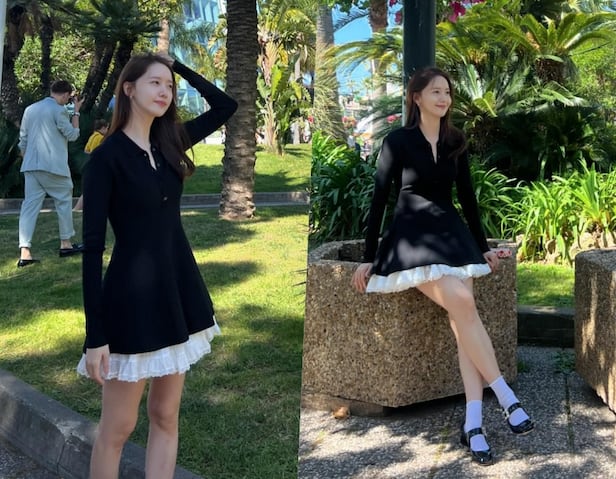 11일 윤아는 '해' 이모티콘과 함께 다수의 사진을 공개했다. 사진 속 윤아는 화이트 셔링 포인트가 있는 블랙 미니 원피스를 입은 사랑스러운 모습이다.