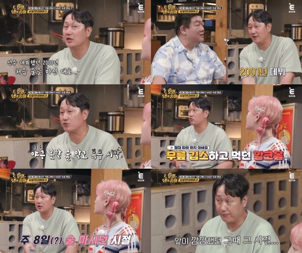 '라떼는' 이야기가 오고 가던 중 이대호는 "2001년도에 야구 선수로 데뷔했다. 그때 처음 술을 마셨는데 2003년도까지 진짜 술을 많이 마셨다"라며 그 시절 이야기를 고백했다.