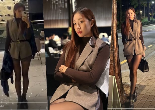 유현주는 그레이 블랙룩의 시크한 룩으로 결혼식에 참석했다. 모던한 패션이었지만, 유현주의 아찔한 각선미가 부각되며 아름다운 자태에 놀라움을 더한다.