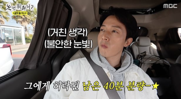 차량 이동 중에도 상황은 달라지지 않았다. ‘거인’ 최홍만의 옆자리에 힘겹게 앉은 김광규의 모습에 멤버들은 “고정 되려고 저걸 버틴다”며 폭소를 터뜨렸지만, 허경환은 웃지 못한 채 연신 머리를 쓸어넘기며 초조함을 드러냈다.