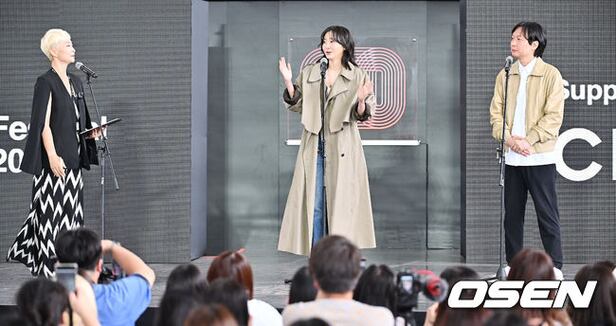 김병우 감독과 배우 김다미가 야외무대인사를 하고 있다. 2025.09.19