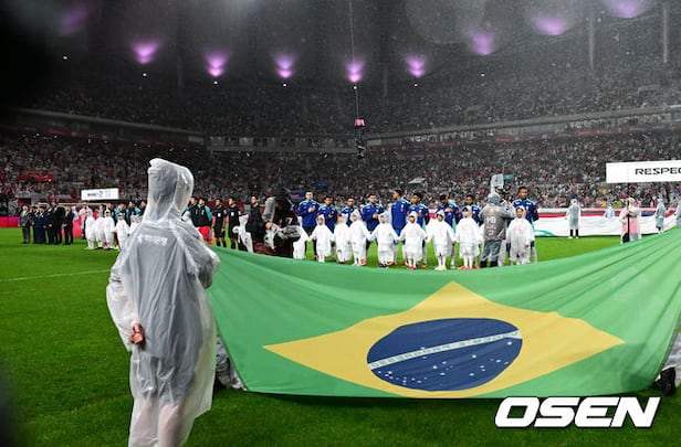 경기에 앞서 브라질 국가가 연주되고 있다. 2025.10.10