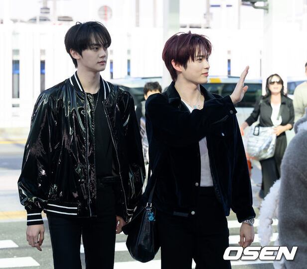 김규빈, 성한빈이 출국장으로 향하며 팬과 취재진을 향해 인사를 하고 있다. 2025.11.13