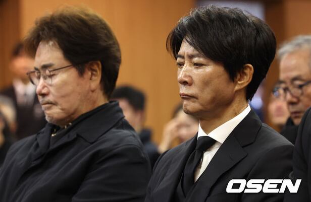 배우 유동근, 최수종이 故 이순재의 영결식에서 고인의 마지막 길을 배웅하고 있다. 2025.11.27