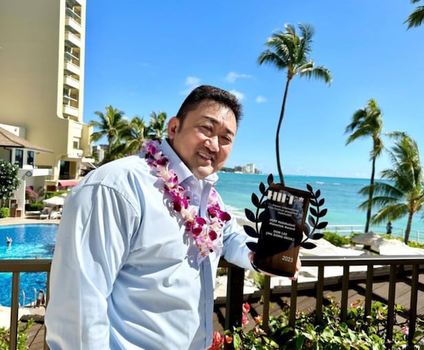 사진에는 마동석이 하와이 인터내셔널 필름 페스티벌을 찾은 마동석이 꽃 목걸이 건 채 환하게 웃는 모습이 담겼다. 카메라를 향해 엄지를 올리고 트로피를 들어보이는가 하면, 영상에서는 자신있게 수상 소감을 말하는 그의 모습이 시선을 사로잡았다.