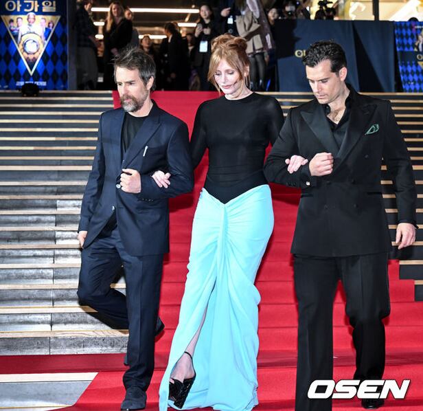 배우 샘 록웰, 브라이스 달라스 하워드, 헨리 카빌이 레드카펫 행사에 참석해 한국 팬들과의 시간을 갖고 있다. 2024.01.18/cej@osen.co.kr