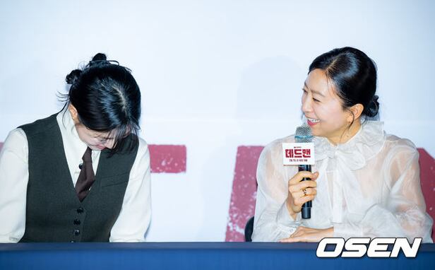 배우 김희애와 이수경이 기자회견 중 얘기를 나누고 있다. 2024.01.29 / rumi@osen.co.kr