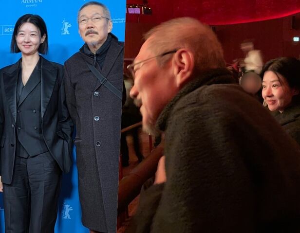 배우 김민희와 사이에서 혼외 아들을 출산한 홍상수 감독의 근황이 공개됐다. 송선미와 '베를린국제영화제'에 참석한 모습이다.