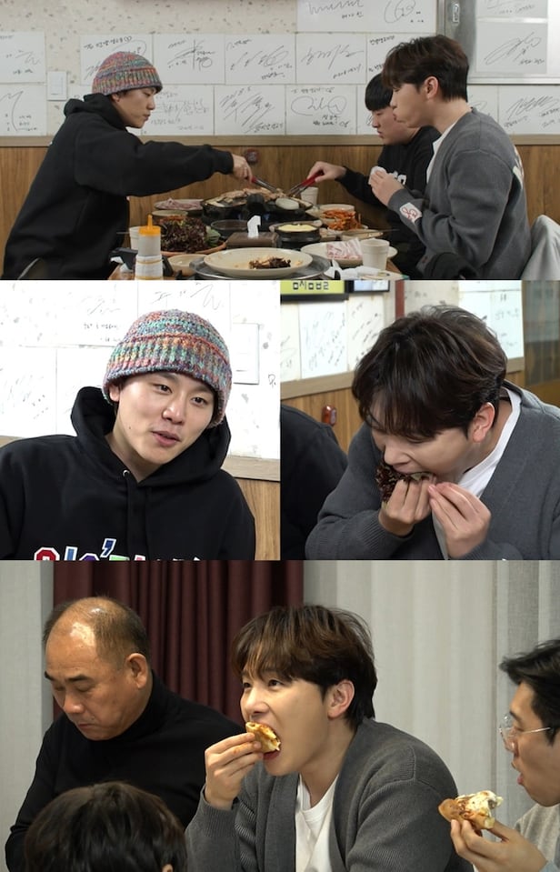 주문한 음식이 나오자마자 덥석 상추를 여러 겹 집어든 김민석에게 김우석은 "형 천천히. 진정해"라고 만류하는 등 이색 먹방을 기대케 한다.