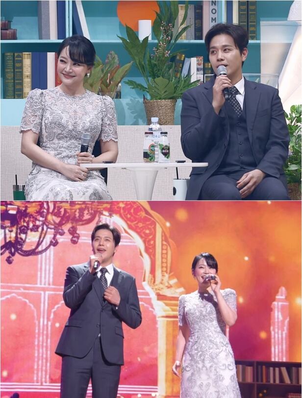 김소현, 손준호 부부는 '사랑의 찬가'를 부르며 한도 초과의 달콤한 무드를 뿜어낸다. 서로를 바라보며 아름다운 하모니로 무대를 가득 채우는 이들 부부의 무대에 관객들은 흐뭇한 미소로 화답했다고. 특히, 엔딩에서 손준호는 김소현의 손을 자신의 가슴에 대고 포옹해 로맨틱의 극치를 보여준다. 이에 갑자기 눈물이 났다는 김소현은 "10년 넘게 오래 살면서 심쿵하는 순간이 많지 않은데 오늘 정말 심쿵했다"고 말해 부러움을 산다.