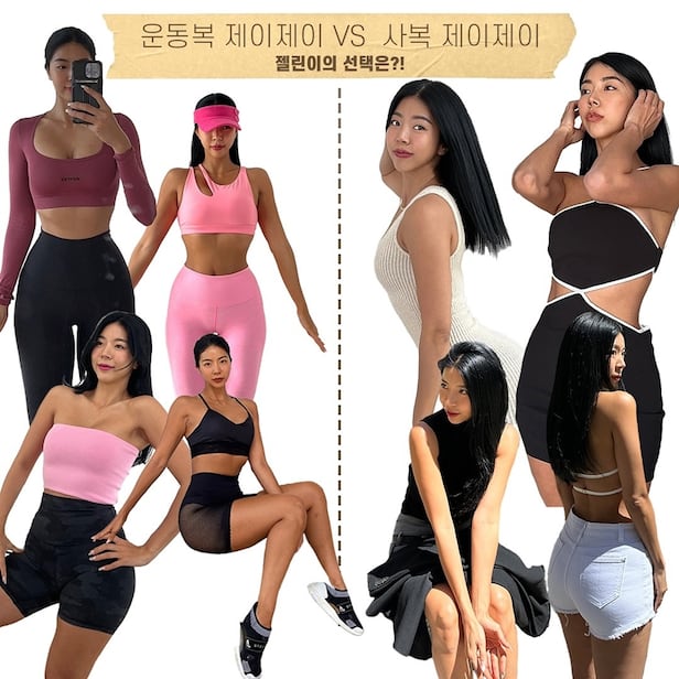'운동복 제이제이 VS 사복 제이제이 젤린이의 선택은?'이라는 제목으로 공개된 사진 속에는 다채로운 운동복과 사복 스타일링을 선보인 제이제이의 모습이 담겨있다. 운동복은 주로 허리와 탄탄한 각선미를 드러내는 스타일이라면 사복 역시 몸매를 드러내면서도 더 다채로운 분위기를 만날 수 있다.