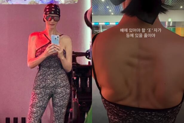 김혜수가 등에 자리한 선명한 왕자를 자랑했다.