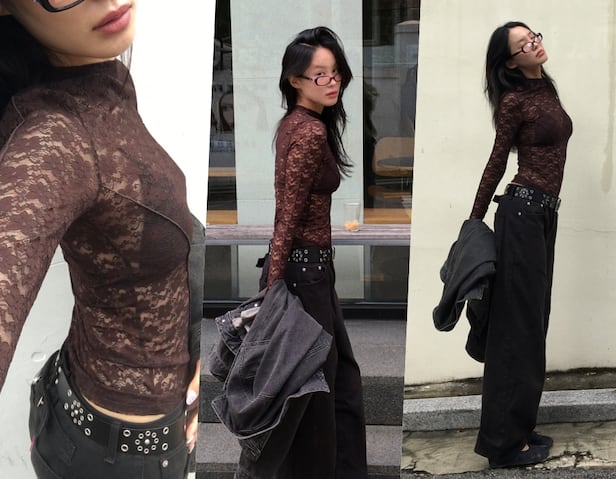 사진 속 강예원은 길거리를 거닐고 있는 모습이다. 특히 그가 입은 착장이 시선을 사로잡는다. 강예원은 커피색의 시스루 소재 상의를 선택, 속에 입은 이너와 가녀린 허리 라인 등을 노출해 아찔한 자태를 완성했다.