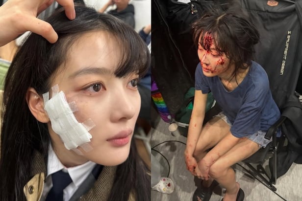 공개된 사진 속에는 '친애하는 X' 촬영 현장 비하인드 컷이 담겼다. 김유정은 얼굴에 피 칠갑을 한 분장에 이어 얼굴 한쪽에 커다란 거즈를 붙인 모습으로 충격을 자아냈다. 극 중 '아진' 역할을 맡아 다채로운 모습을 보여주고 있는 김유정의 열연 모멘트가 눈길을 잡아끈다.