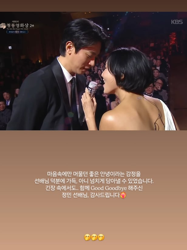 공개된 사진 속에는 '청룡영화상' 특별무대에서 화사가 마지막 소절을 박정민과 함께 하고 있는 모습이 담겨있다. 박정민은 화사가 'Good Goodbye'를 부를 때 무대 앞으로 빨간 구드를 들고 나와 그에게 건네는 퍼포먼스를 선보였다. 두 사람은 뮤직비디오 'Good Goodbye'를 함께 작업한데 이어 특별 무대까지 꾸미며 대중의 큰 반응을 이끌어냈다.