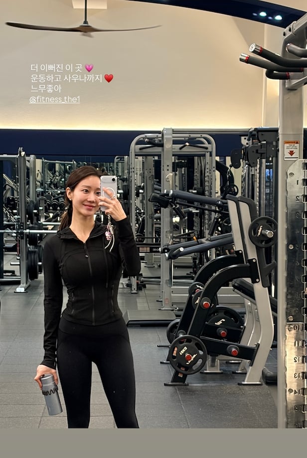 사진 속에는 압구정에 위치한 한 헬스장을 찾은 한그루의 모습이 담겨있다. 한그루는 헬스장 거울을 활용해 셀카를 찍고 있는 모습으로 몸매 라인을 드러내는 집업과 레깅스를 매치해 눈길을 끌었다.