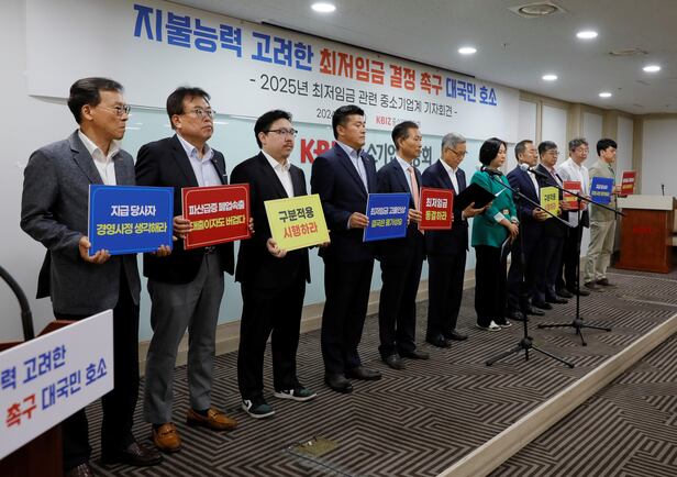 중소기업중앙회가 27일 여의도 중소기업중앙회에서 '지불능력 고려한 2025년도 최저임금 결정 촉구 대국민 호소 기자회견'을 개최했다.