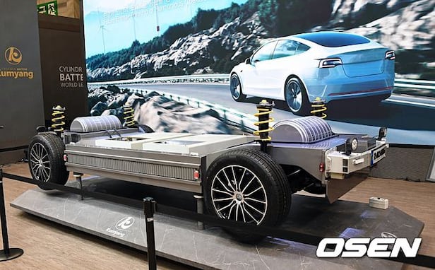 ㈜금양(회장 류광지)이 28일 개막한 '2024 부산 모빌리티쇼'에서 4695 원통형 배터리를 장착한 4륜구동 완성차 모형을 공개했다. 이 배터리는 높은 에너지 밀도로 갖추면서도 빠른 충전 속도와 높은 안전성, 긴 수명을 확보했다고 금양은 밝히고 있다.