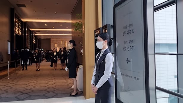 이날 결혼식에는 이웅열 코오롱(002020) 명예회장을 비롯한 가족과 친척 외에도 이재용 삼성전자(005930) 부회장, 최태원 SK(034730)그룹 회장, 구광모 LG(003550)그룹 회장, 신동빈 롯데그룹 회장, 정용진 신세계그룹 부회장, 정몽준 아산사회복지재단 이사장과 정기선 현대중공업그룹 사장, 손경식 한국경영자총협회 회장, 구자열 한국무역협호 회장, 서정진 셀트리온그룹 명예회장, 박정원 두산(000150)그룹 회장 등 재계 주요 인사들이 대거 참석했다.