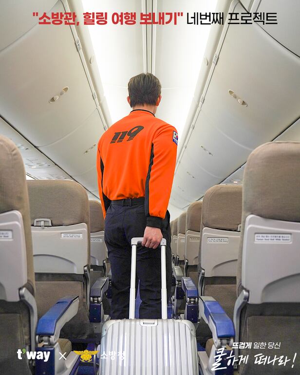 티웨이항공(091810)이 소방관 무료 여행을 지원하는 '뜨겁게 일한 당신, 쿨하게 떠나라'의 네 번째 프로젝트 참가자를 모집한다고 5일 밝혔다. 오는 21일까지 전국 소방공무원 대상으로 참가 신청을 받는다.