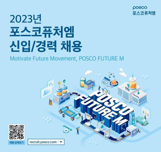 포스코퓨처엠(003670)은 배터리 소재 부문에서 신입과 경력을 포함한 대규모 채용에 나섰다고 11일 밝혔다. 신입사원의 경우 오는 19일(생산기술직 15일), 경력사원은 25일까지 접수할 수 있다.