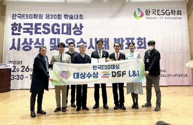 디에스에프엘앤아이는 제1회 한국ESG대상에서 ESG(환경·사회·지배구조) 문화 확산에 기여한 공로를 인정받아 소기업 제조 부문 대상을 수상했다고 27일 밝혔다. 디에스에프엘앤아이는 근거리 무선통신(NFC)을 활용한 다회용기 순환 서비스 모델을 구축했다.